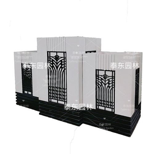 正方形設(shè)計呈現(xiàn)的線條更加簡潔,多是橫線和豎線的對峙,沒有多余線條的干擾。整個花箱設(shè)計傳達(dá)的思路清晰,花箱更加整潔,高級感油然而生。方形花箱設(shè)計可以使整體組合變得鮮明,同時利用大小對比的關(guān)系,可以有效突出每個小花器所呈現(xiàn)的景觀效果,避免景觀效果的沖突和無序,同時可以通過不同的布置方式突出某一區(qū)域的景觀。